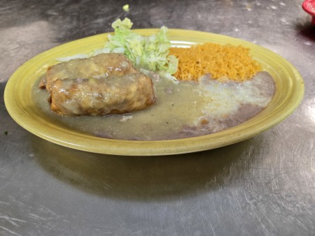 Beef chunks cooked in a Colorado (red) sauce, with rice & beans on the side | With guacamole and sour cream +$2.99