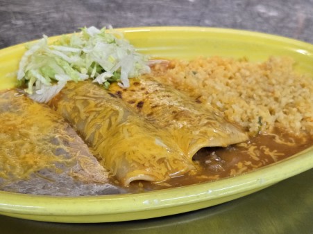 All enchiladas served with rice & beans